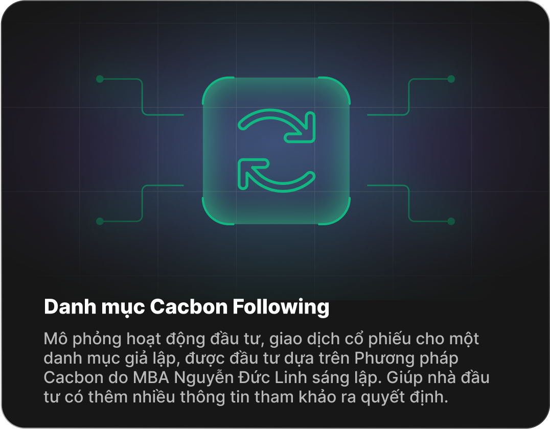 Cacbon Research lấy cảm hứng từ sự hình thành của kim cương được tạo ra bởi carbon (Cacbon) dưới một nền nhiệt cao và áp suất lớn. Chúng tôi kiến tạo ra hệ sinh thái đồng hành cùng nhà đầu tư chứng khoán giúp gia tăng hiệu suất vượt trội và nâng cao năng lực đầu tư với 3 yếu tố cốt lõi chính là Tinh - Nhân - Biến. Cùng với đó là lý tưởng tạo ra một cộng đồng nhà đầu tư có năng lực vững vàng trong suốt hành trình tham gia thị trường chứng khoán với vô vàn biến động, cũng giống như con đường từ "Cacbon" trở thành "Diamond".