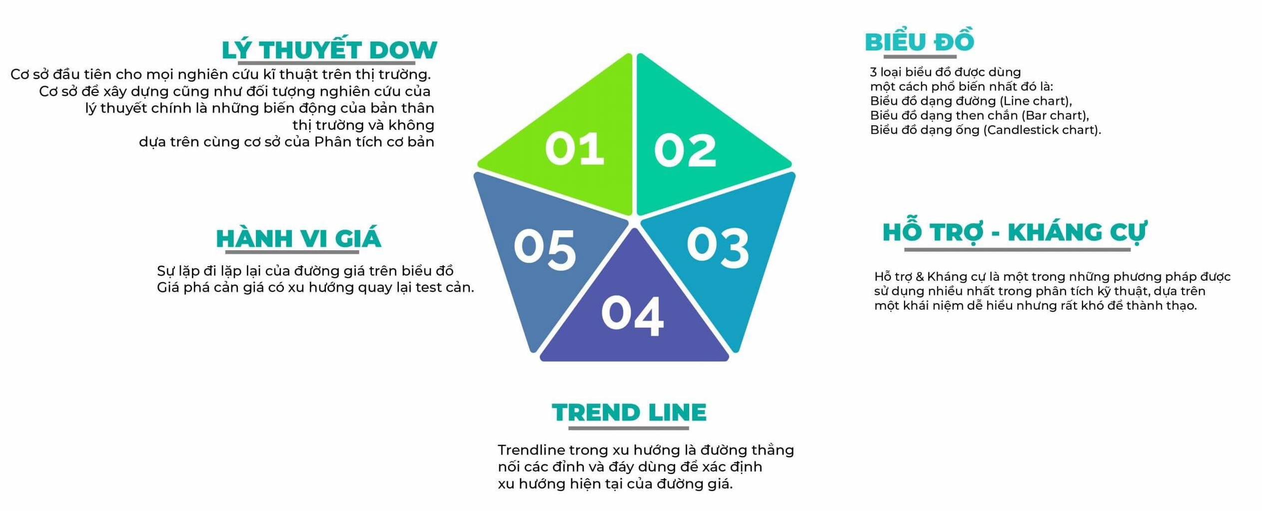 Các trường phái phân tích kỹ thuật phổ biến: trường phái tích kiểu Nhật; trường phái hamonic; trường phái cổ điển và tân cổ điển; trường phái volume spread analysis.