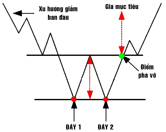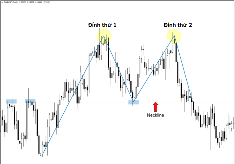 Mô hình 2 đỉnh 2 đáy xuất hiện sau 1 quá trình giá tăng điểm (giảm điểm)