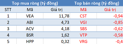 Trên UPCom, khối ngoại có phiên mua ròng thứ 4 liên tiếp với giá trị 20 tỷ đồng.