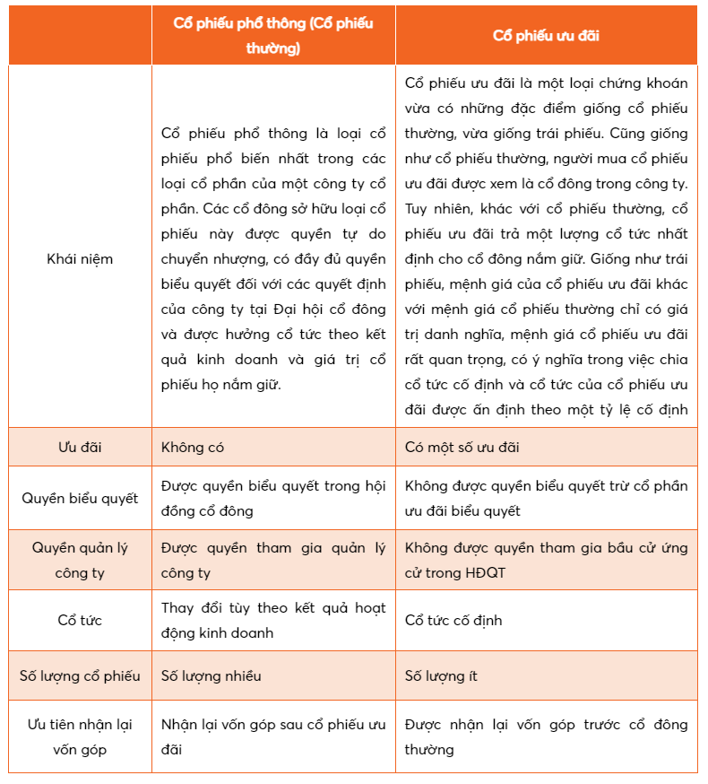 Thông thường hiện nay các công ty cổ phần thường phát hành hai dạng cổ phiếu: Cổ phiếu phổ thông và Cổ phiếu ưu đãi.