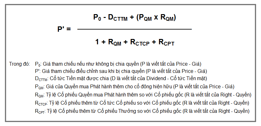 Công thức tính giá điều chỉnh khi trả cổ tức: