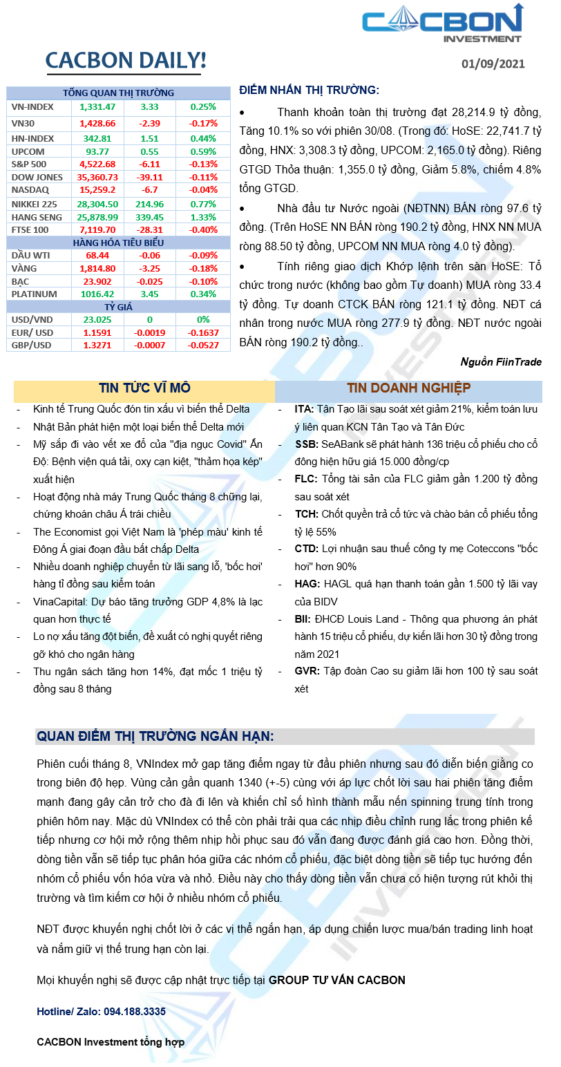 Nhật ký thị trường 01/09/2021 - Thu hẹp khoảng cách với ngưỡng kháng cự mạnh 1,340 điểm