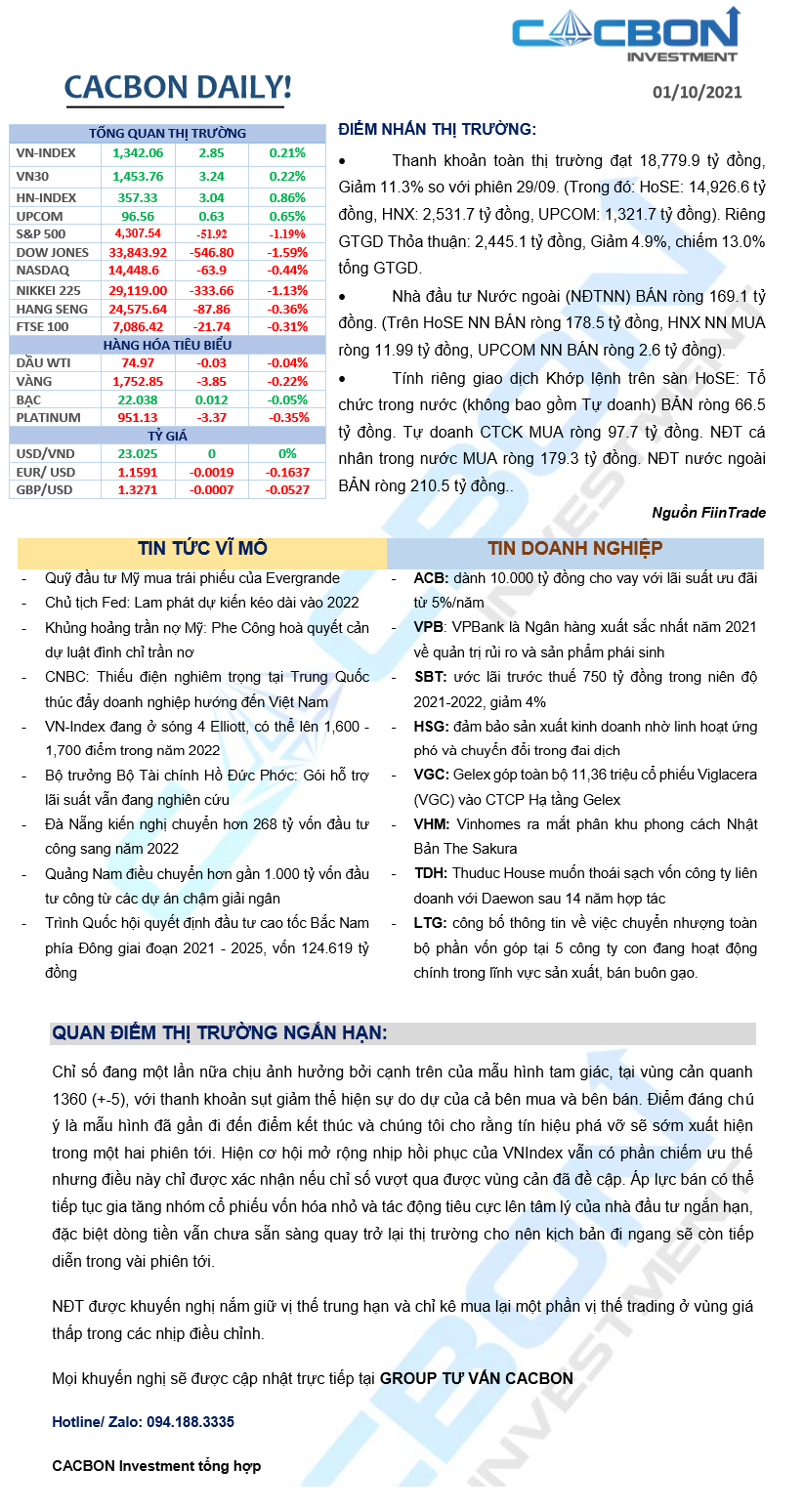 Nhật ký thị trường 01/10/2021 - Các chỉ số tăng nhẹ phiên cuối cùng của tháng 09