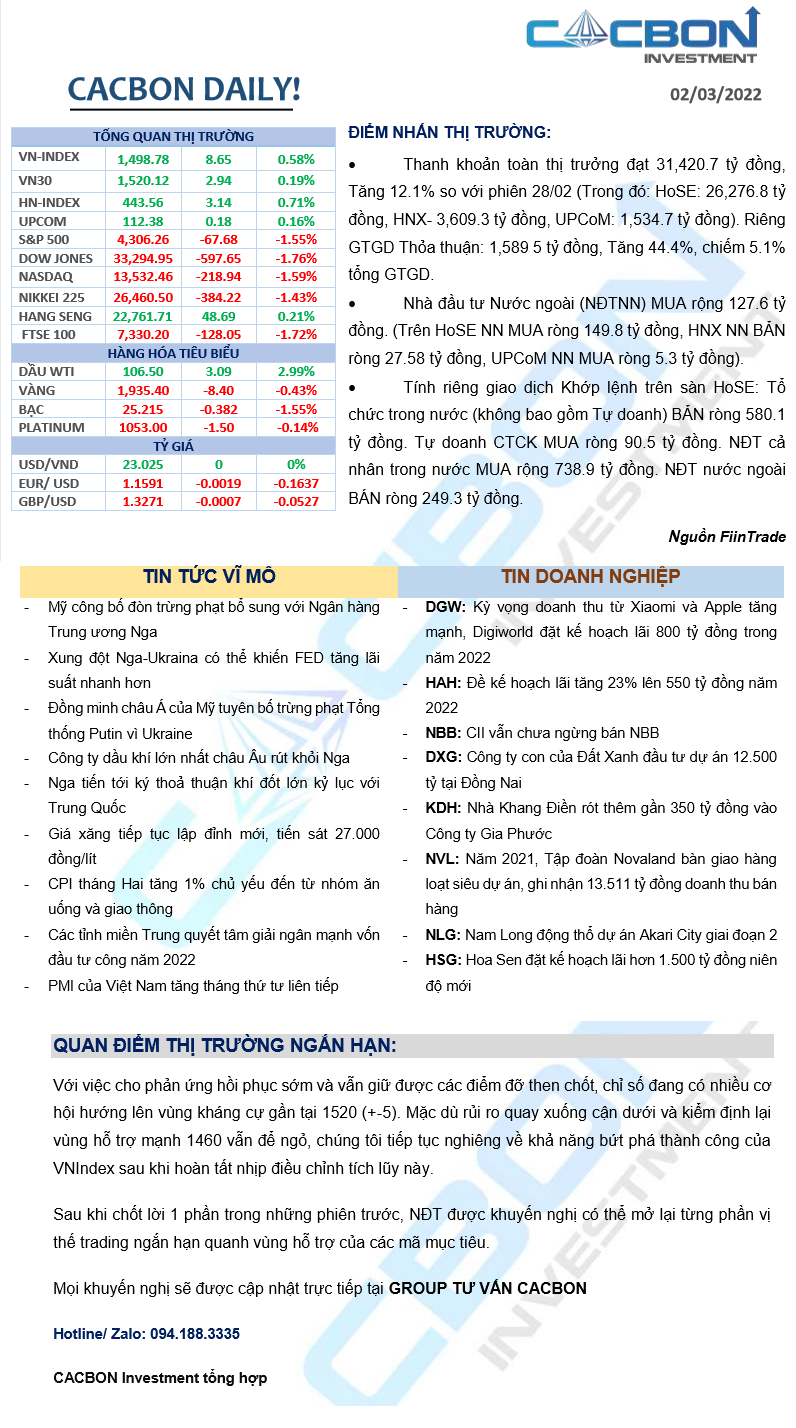 Nhật ký thị trường 02/03/2022 - Thu hẹp khoảng cách với ngưỡng kháng cự mạnh 1,512 điểm