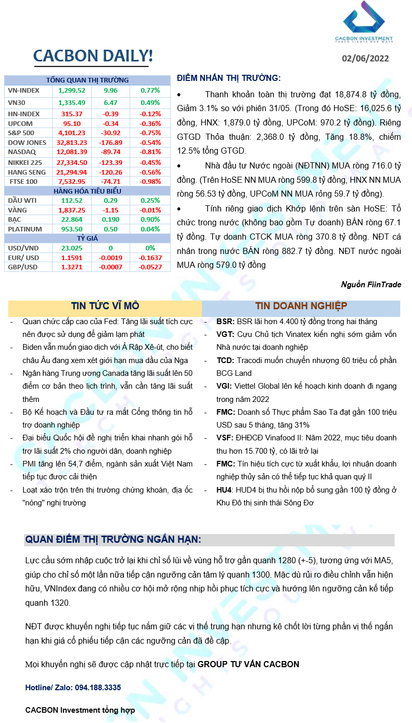 Nhật ký thị trường 02/06/2022 - VNINDEX tiến sát 1300!