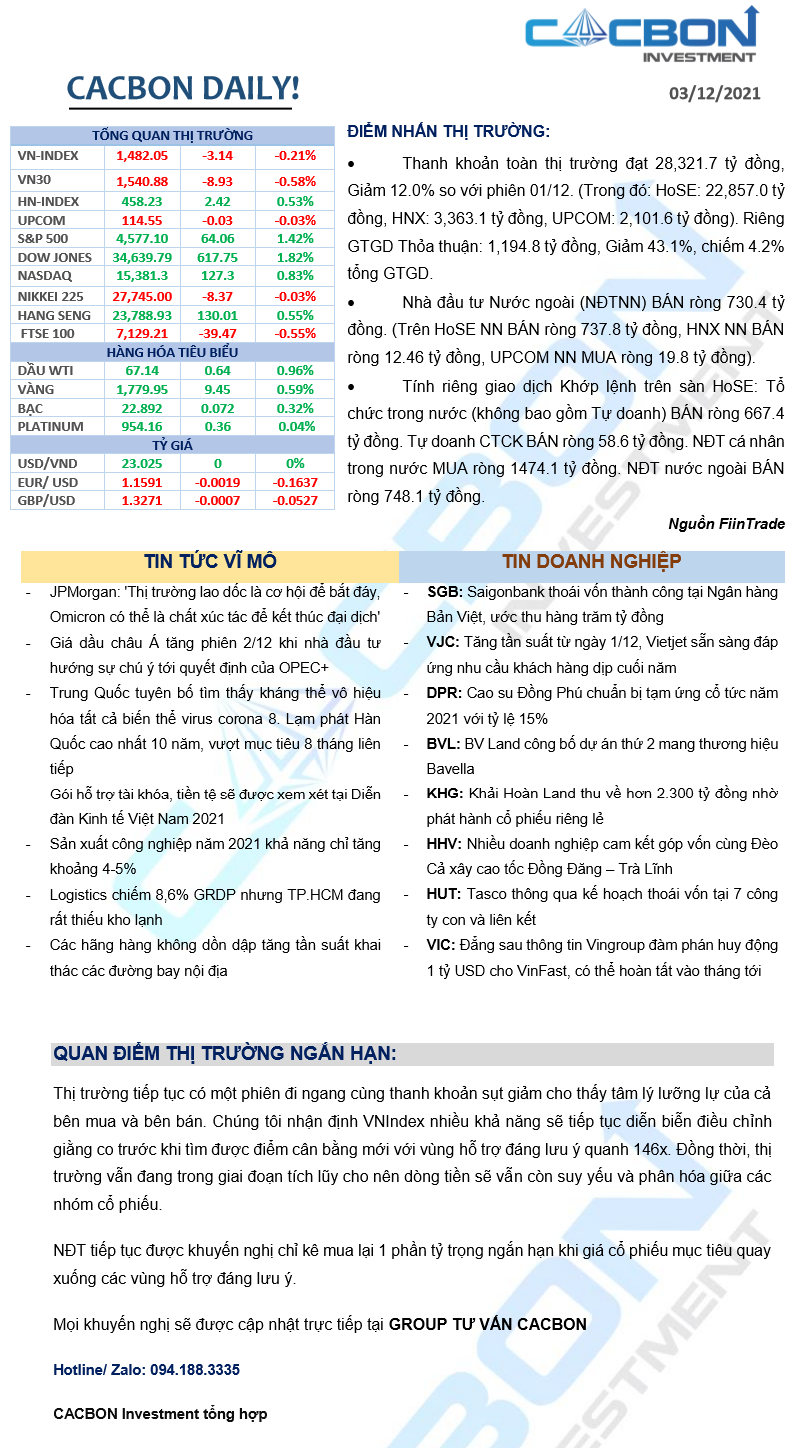 Nhật ký thị trường 03/12/2021 - Sắc đỏ chiếm ưu thế