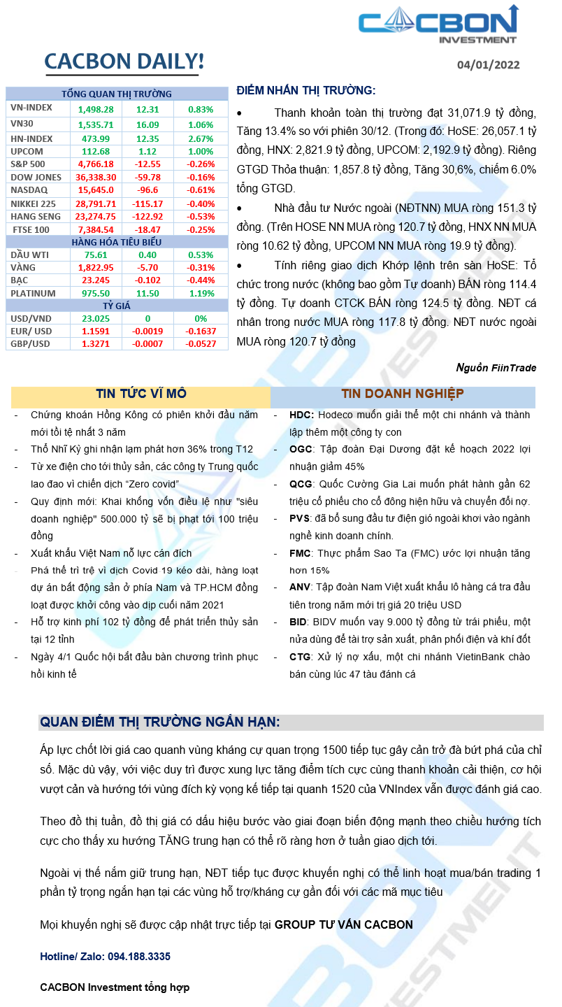 Nhật ký thị trường 04/01/2022 - Chạm ngưỡng 1.500, liệu VN-Index có tăng tốc trong phiên đầu năm mới?
