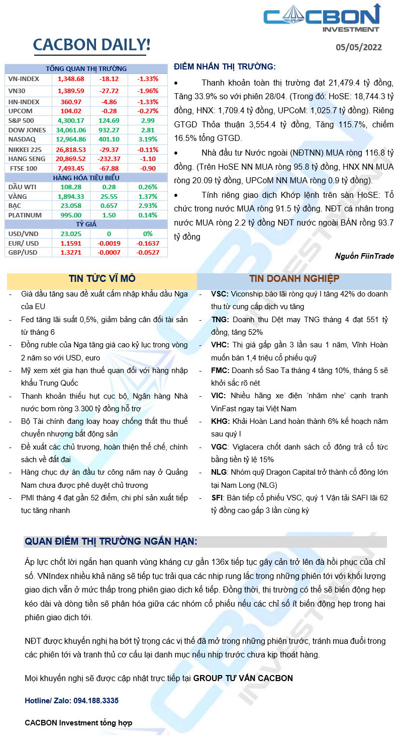 Nhật ký thị trường 05/05/2022 - Áp lực vùng 137x