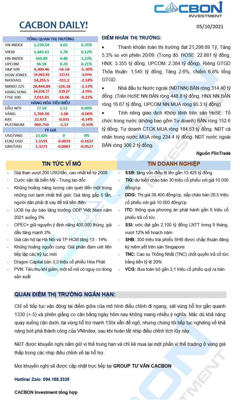 Nhật ký thị trường 05/10/2021 - Dòng tiền tham gia mạnh nhóm VLXD, Điện