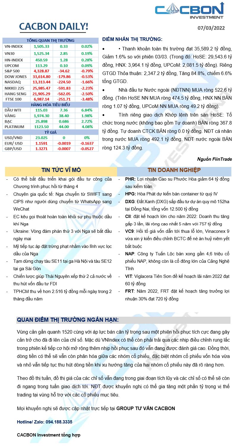 Nhật ký thị trường 06/03/2022 - Các chỉ số biến động hẹp