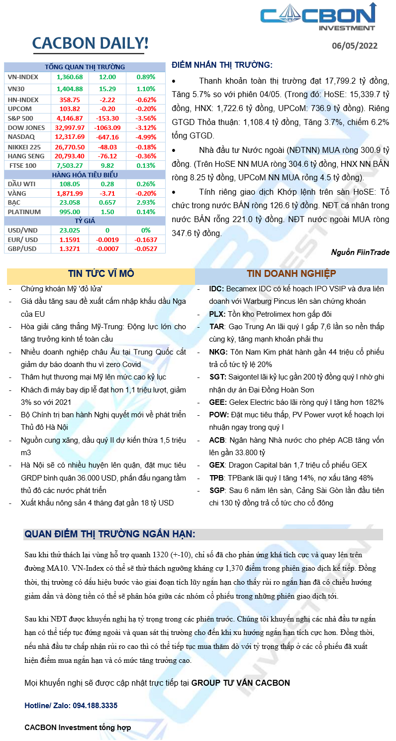 Nhật ký thị trường 06/05/2022 - Thu hẹp khoảng cách với ngưỡng kháng cự mạnh 1,370 điểm