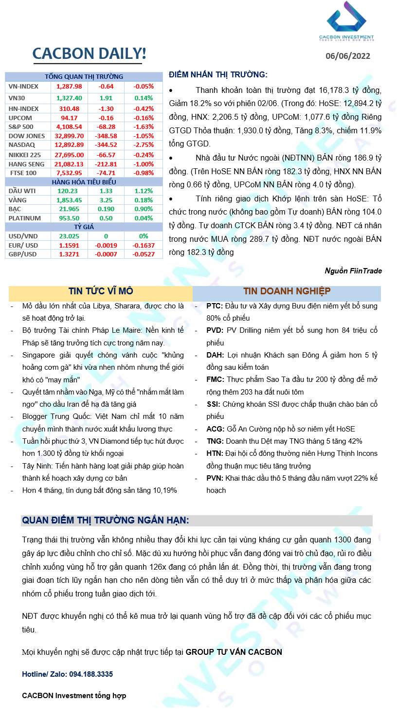 Nhật ký thị trường 06/06/2022 - VNINDEX lưỡng lự tại 1300+-