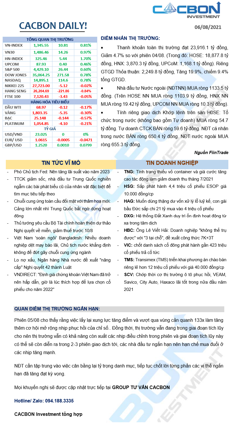 Nhật ký thị trường 06/08/2021 - Khối ngoại duy trì chuỗi mua ròng