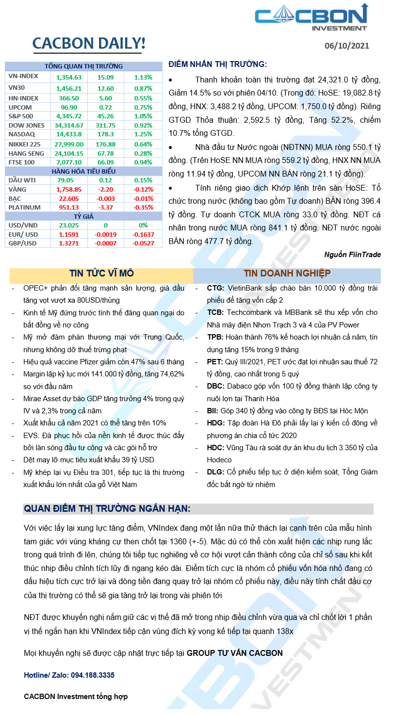 Nhật ký thị trường 06/10/2021 - Tiếp tục hồi phục