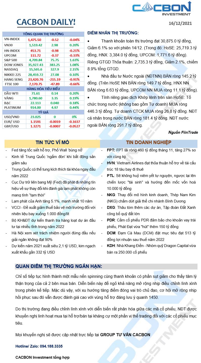 Nhật ký thị trường 06/12/2021 - VN-Index đi ngang