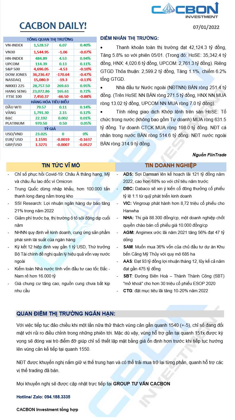Nhật ký thị trường 07/01/2022 - VN-Index phục hồi bù đắp phiên giảm trước