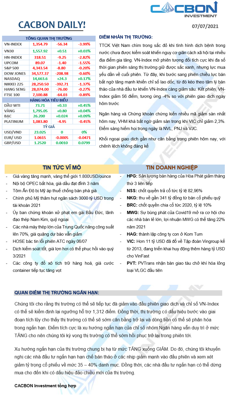 Nhật ký thị trường 07/07/2021 - Phiên giảm sâu đầu tiên trong tháng 7