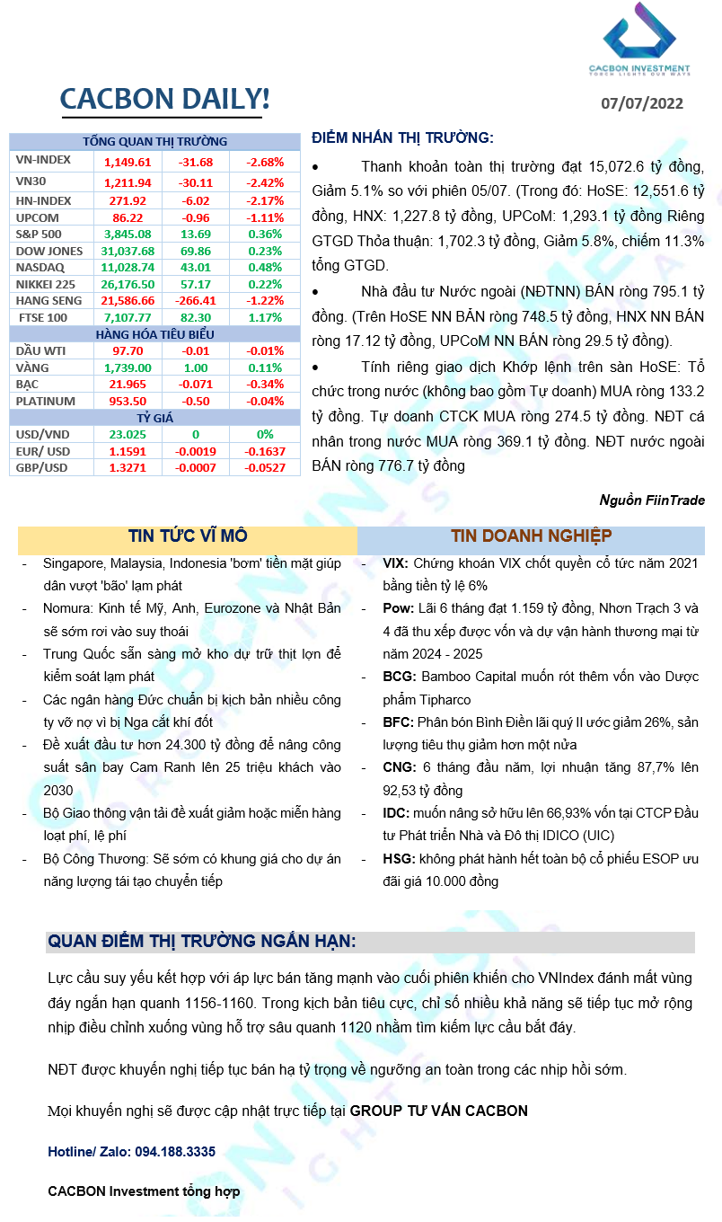 Nhật ký thị trường 07/07/2022 - VN-Index đóng cửa ở mức thấp nhất trong hơn 1 năm