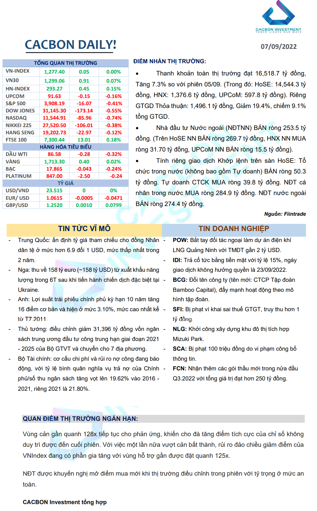 Nhật ký thị trường 07/09/2022 - VN-Index tăng với đà chậm