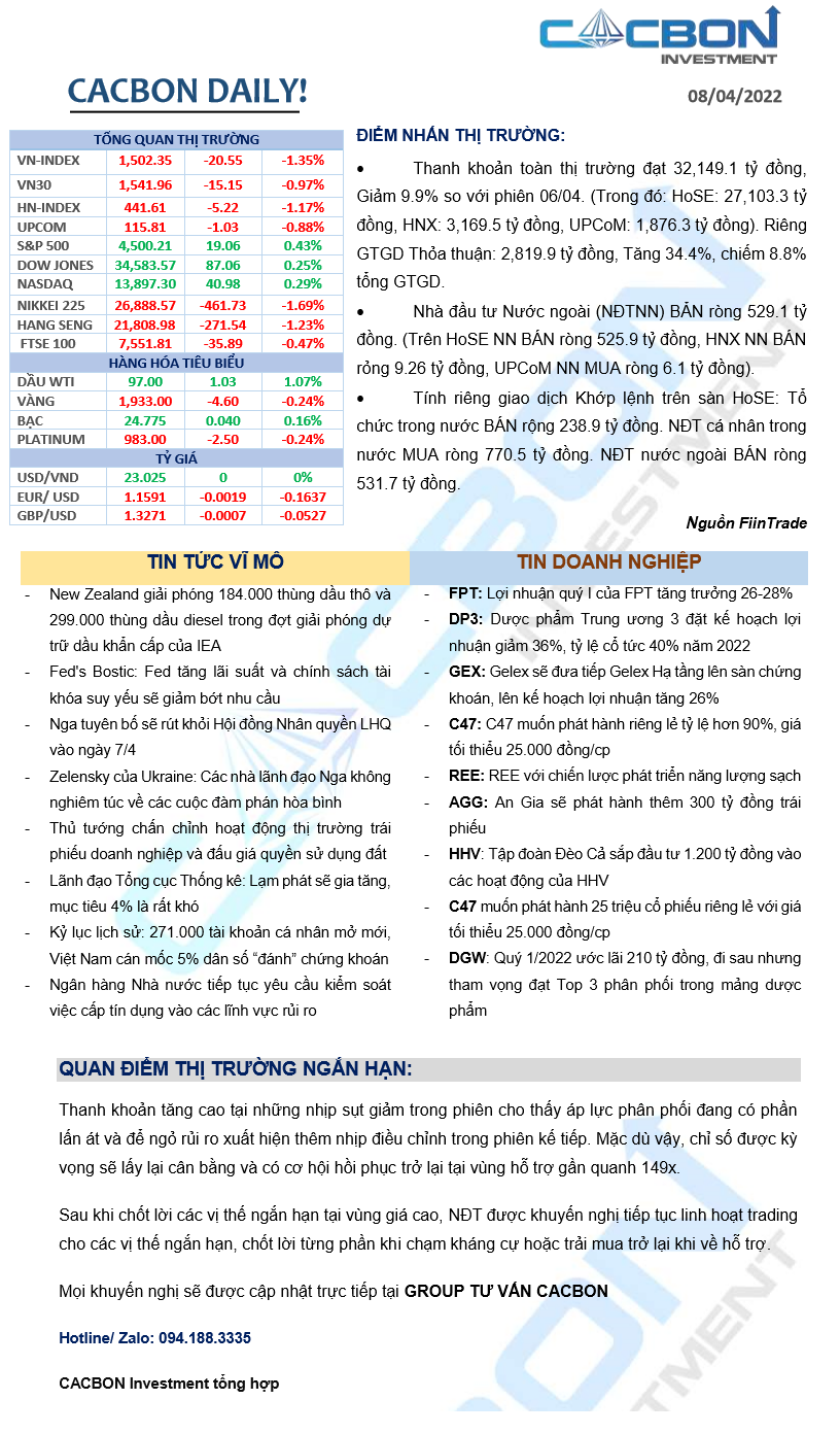 Nhật ký thị trường 08/04/2022 - Bán mạnh vào cuối phiên trước