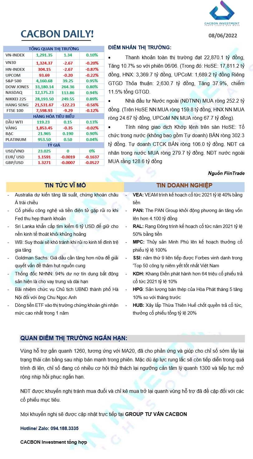 Nhật ký thị trường 08/06/2022 - Lực cầu cuối phiên giữ nhịp tăng cho VN-Index