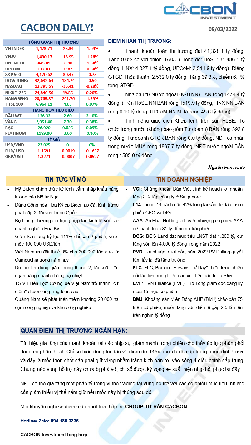 Nhật ký thị trường 09/03/2022 - Tiếp tục điều chỉnh