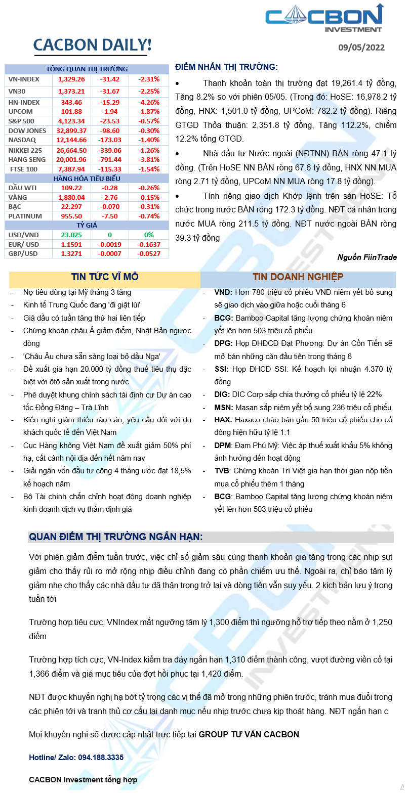 Nhật ký thị trường 09/05/2022 - Ngưỡng hỗ trợ 1,300 điểm liệu có thể bị xuyên thủng?