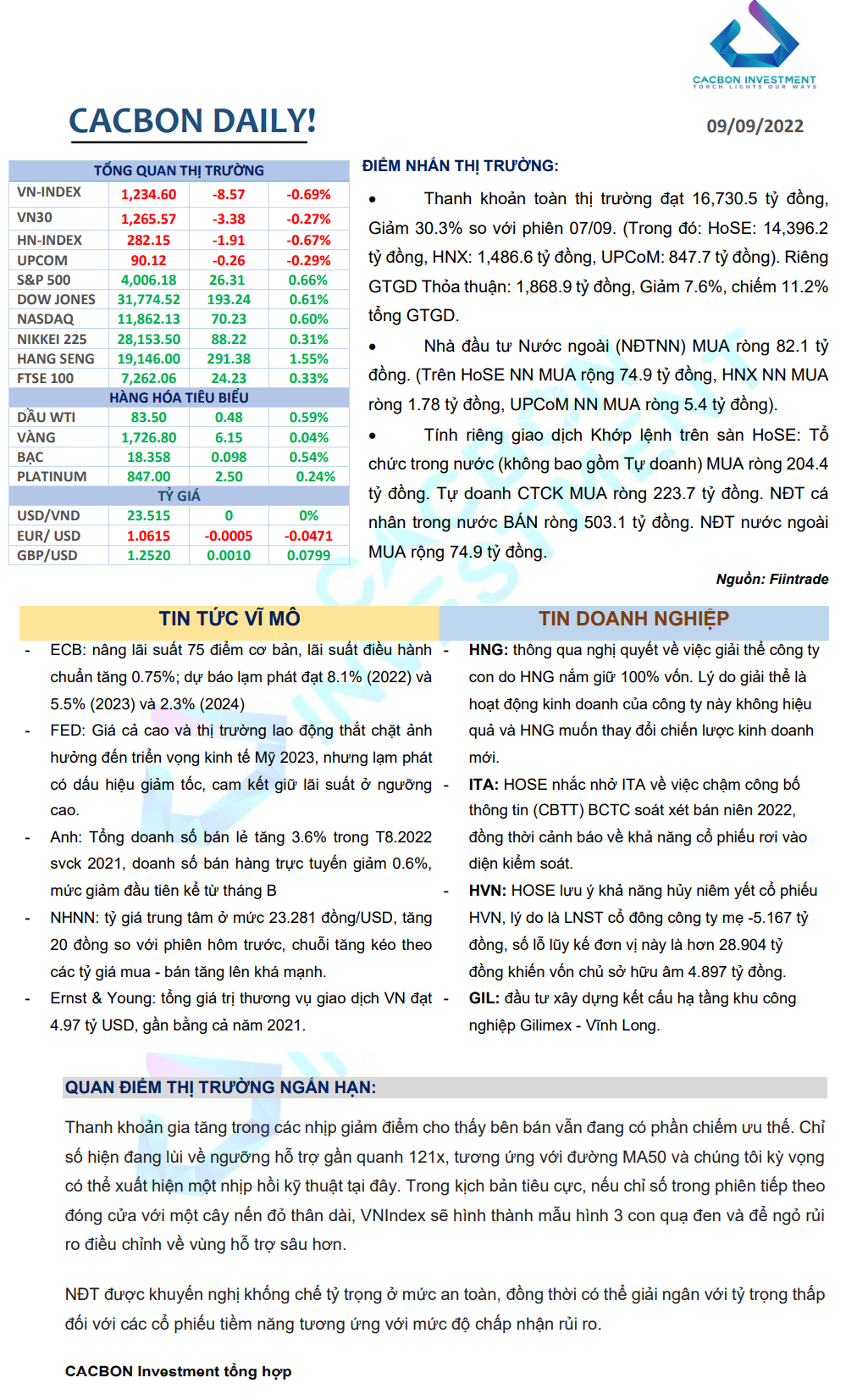 Nhật ký thị trường 09/09/2022 - VN-Index sau 2 phiên bị bán mạnh