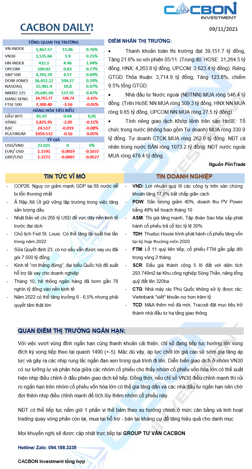 Nhật ký thị trường 09/11/2021 - Khối ngoại tiếp tục mua ròng