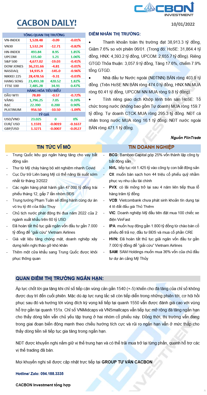 Nhật ký thị trường 10/01/2022 - Dòng tiền tập trung ở nhóm vốn hoá vừa và nhỏ