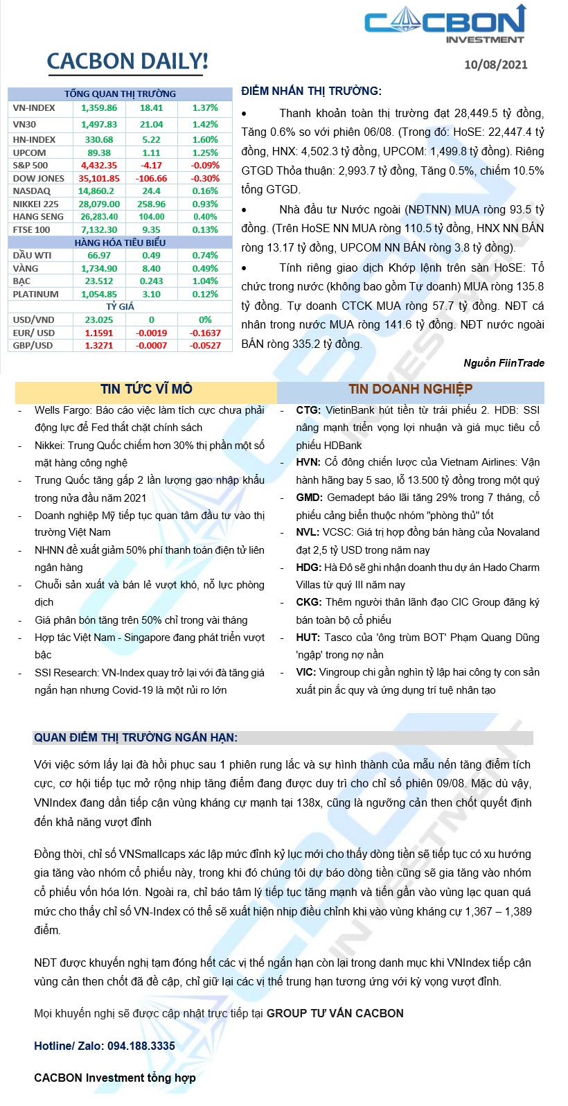Nhật ký thị trường 10/08/2021 - Đà tăng lan toả
