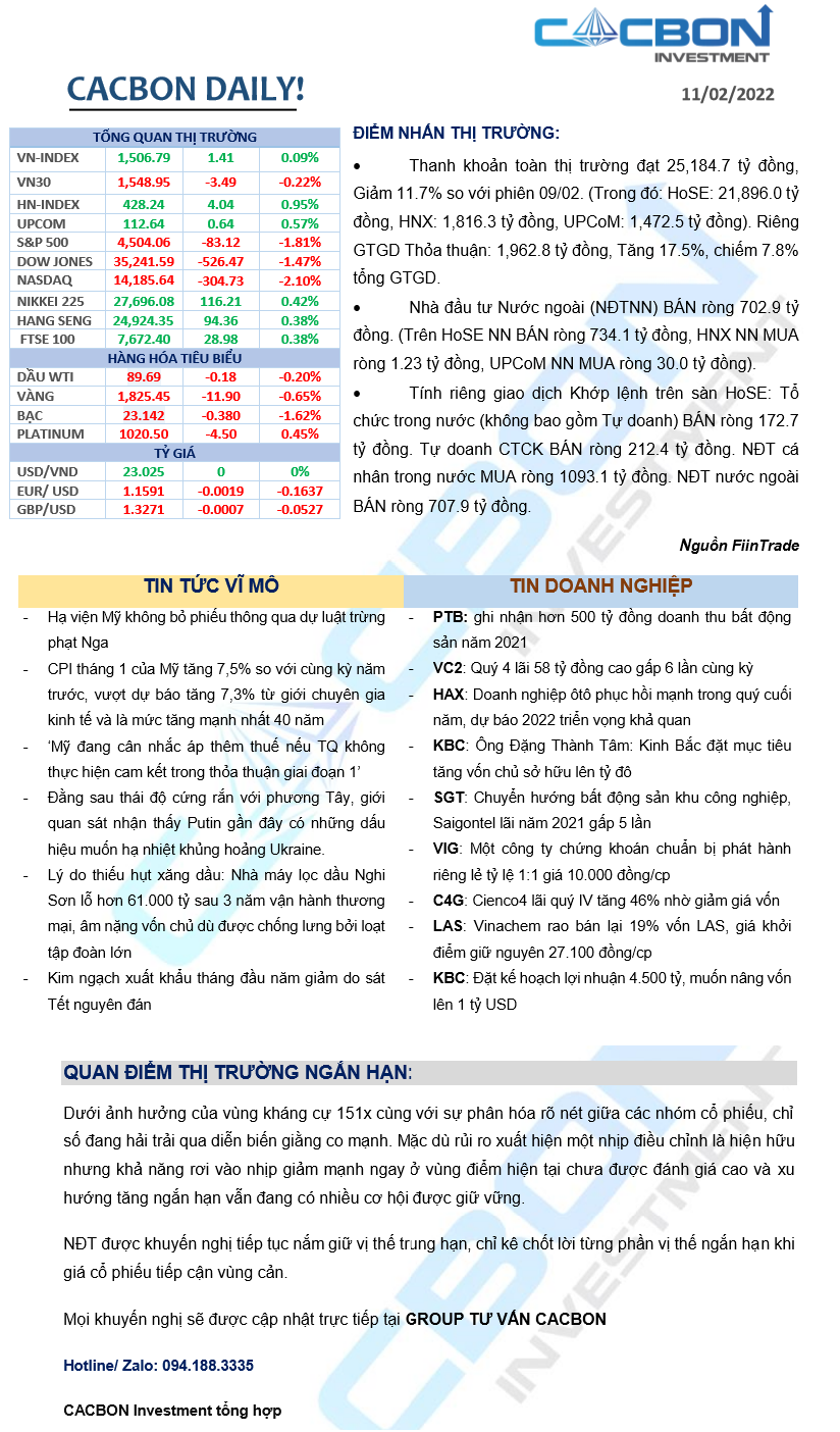 Nhật ký thị trường 11/02/2022 - Kiểm định ngưỡng 1,500 điểm