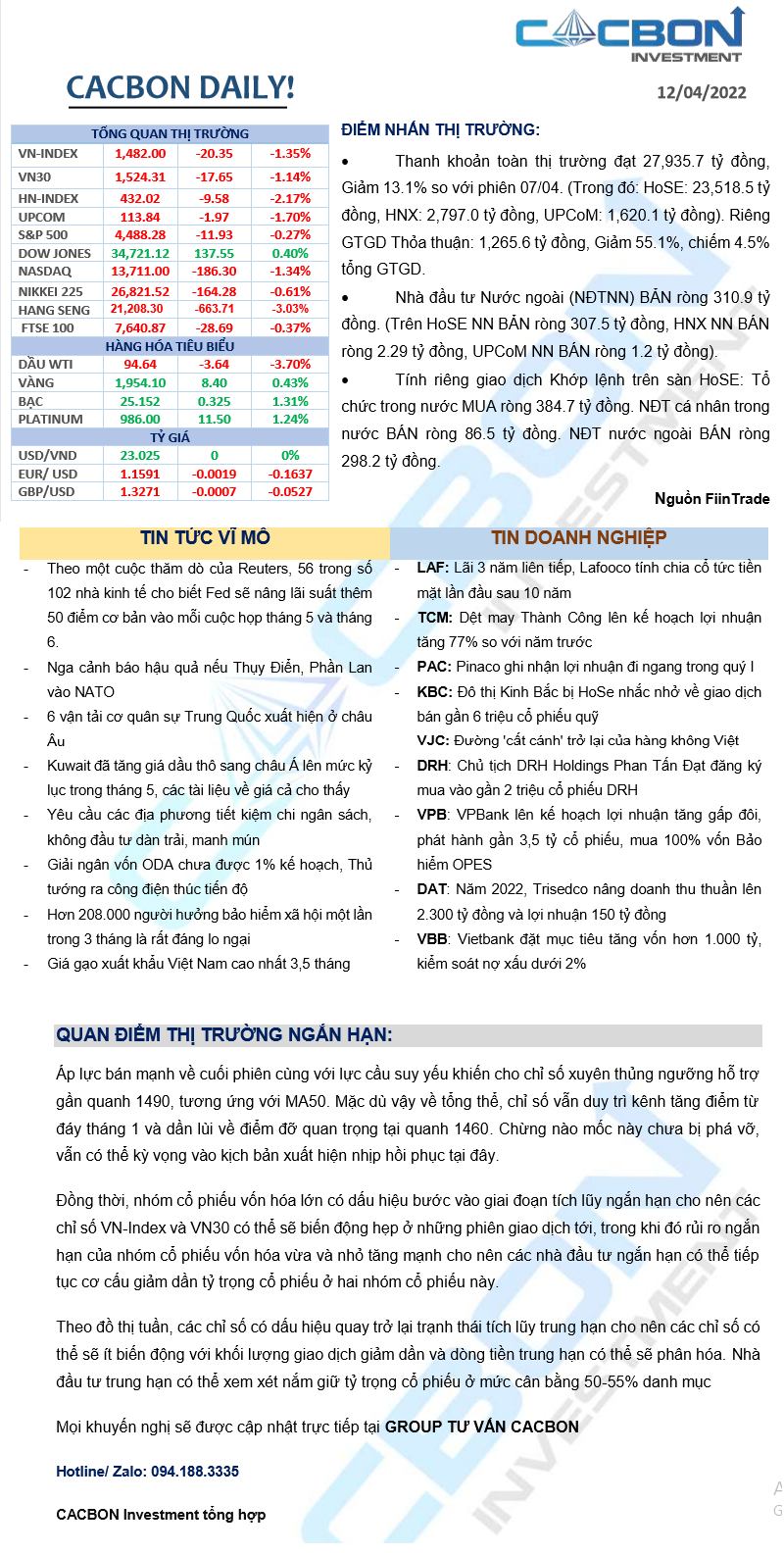 Nhật ký thị trường 12/04/2022 - Tâm lý tiếp tục thận trọng