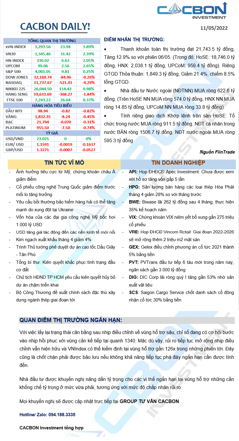 Nhật ký thị trường 11/05/2022 - Vùng cản kế tiếp tại quanh 1340.