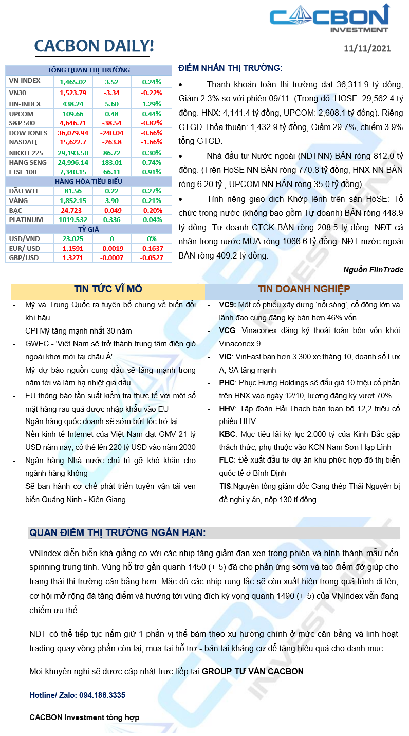 Nhật ký thị trường 11/11/2021 - Thị trường tiếp tục phân hoá