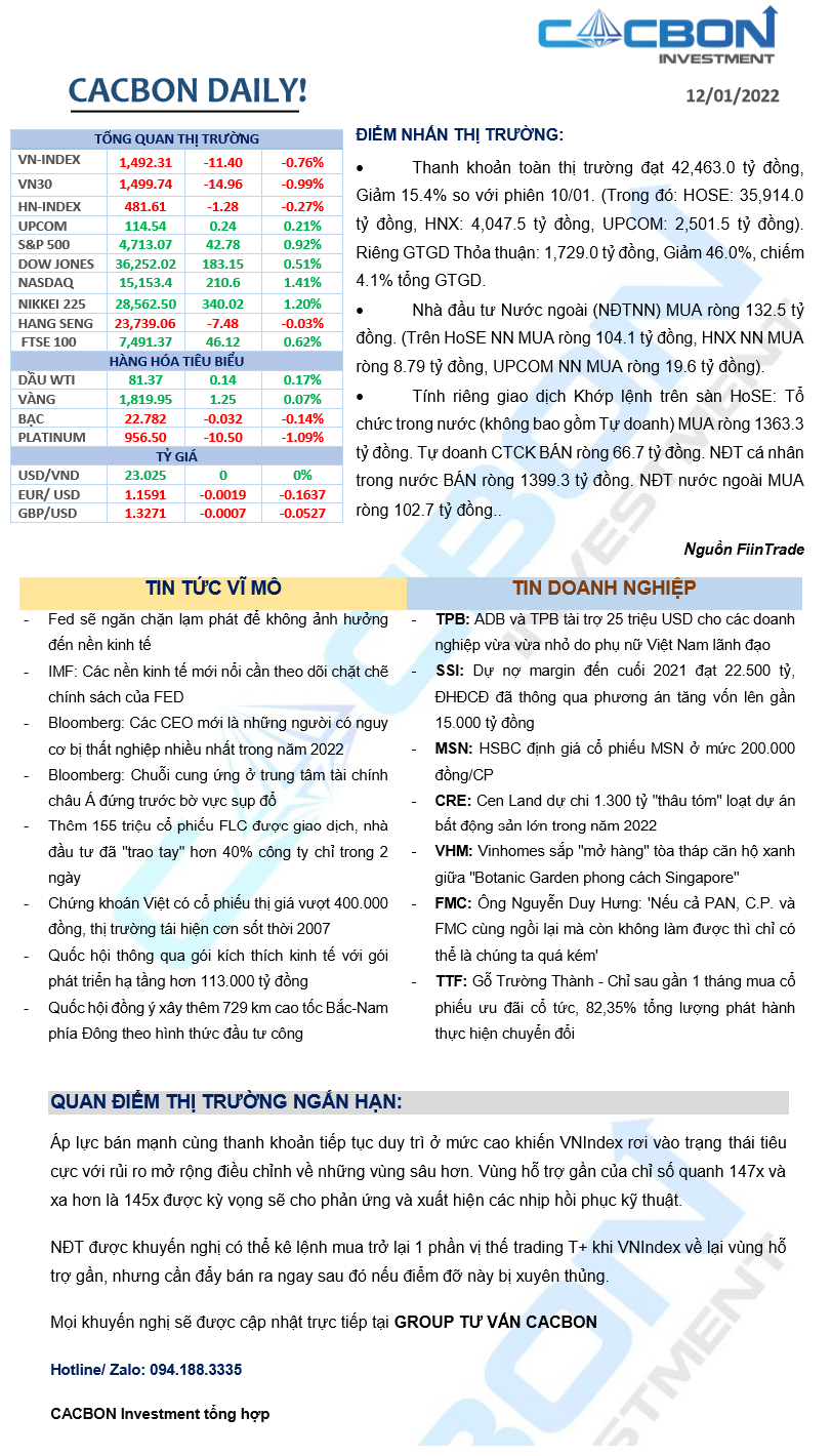 Nhật ký thị trường 12/01/2022 - Tạm rời mốc 1500