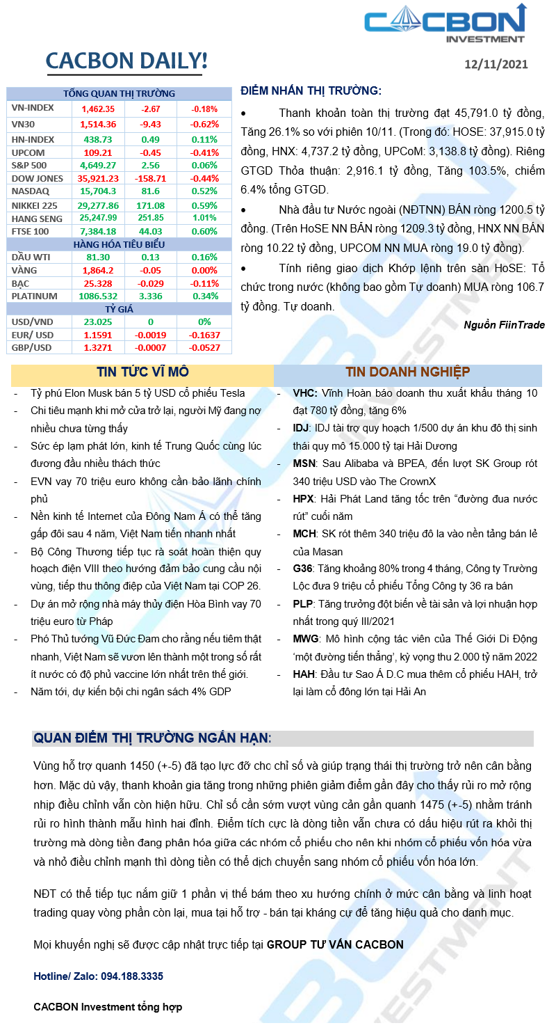 Nhật ký thị trường 12/11/2021 - Nhóm Bất động sản đi ngược thị trường