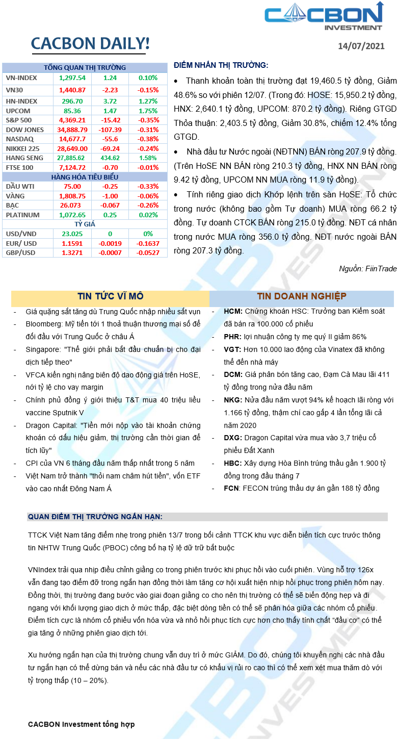 Nhật ký thị trường 14/07/2021 - Thị trường cân bằng trở lại