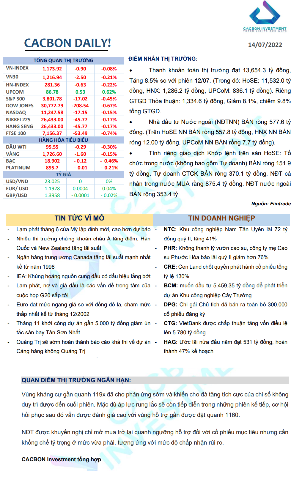 Nhật ký thị trường 14/07/2022 - Thị trường sideway