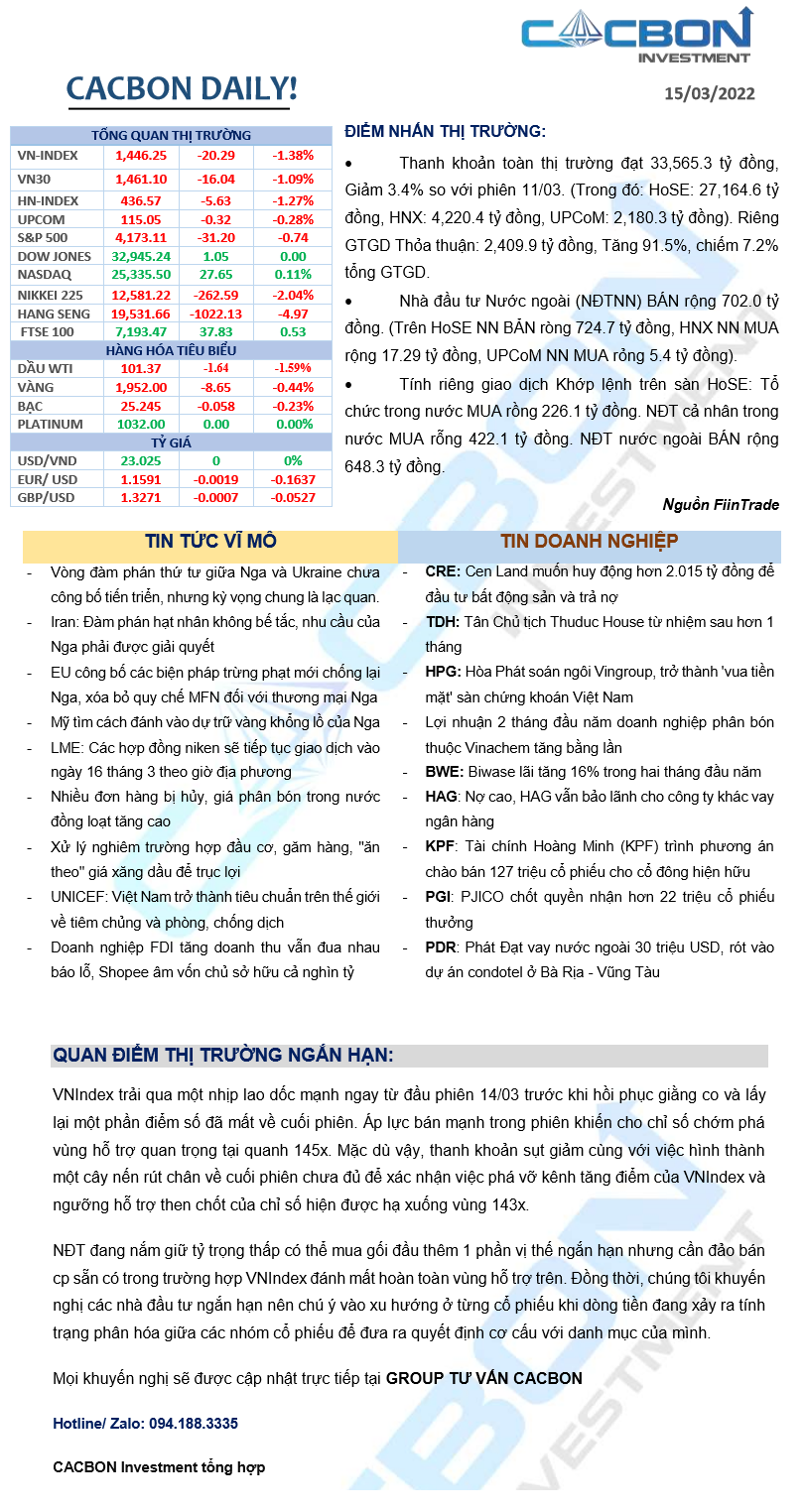 Nhật ký thị trường 15/03/2022 - Thị trường tiếp tục giảm điểm