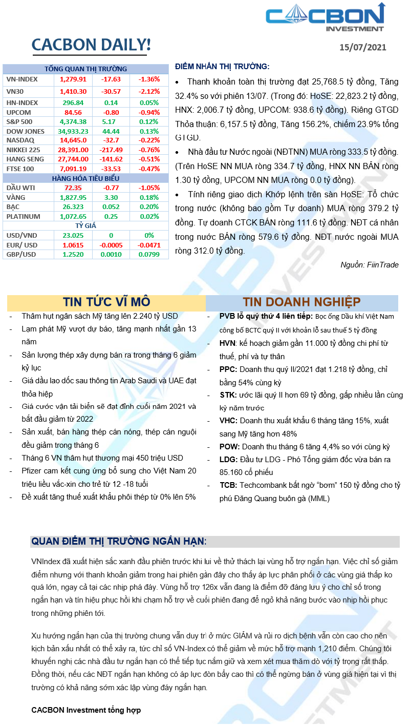 Nhật ký thị trường 15/07/2021 - Diễn biến phân hóa