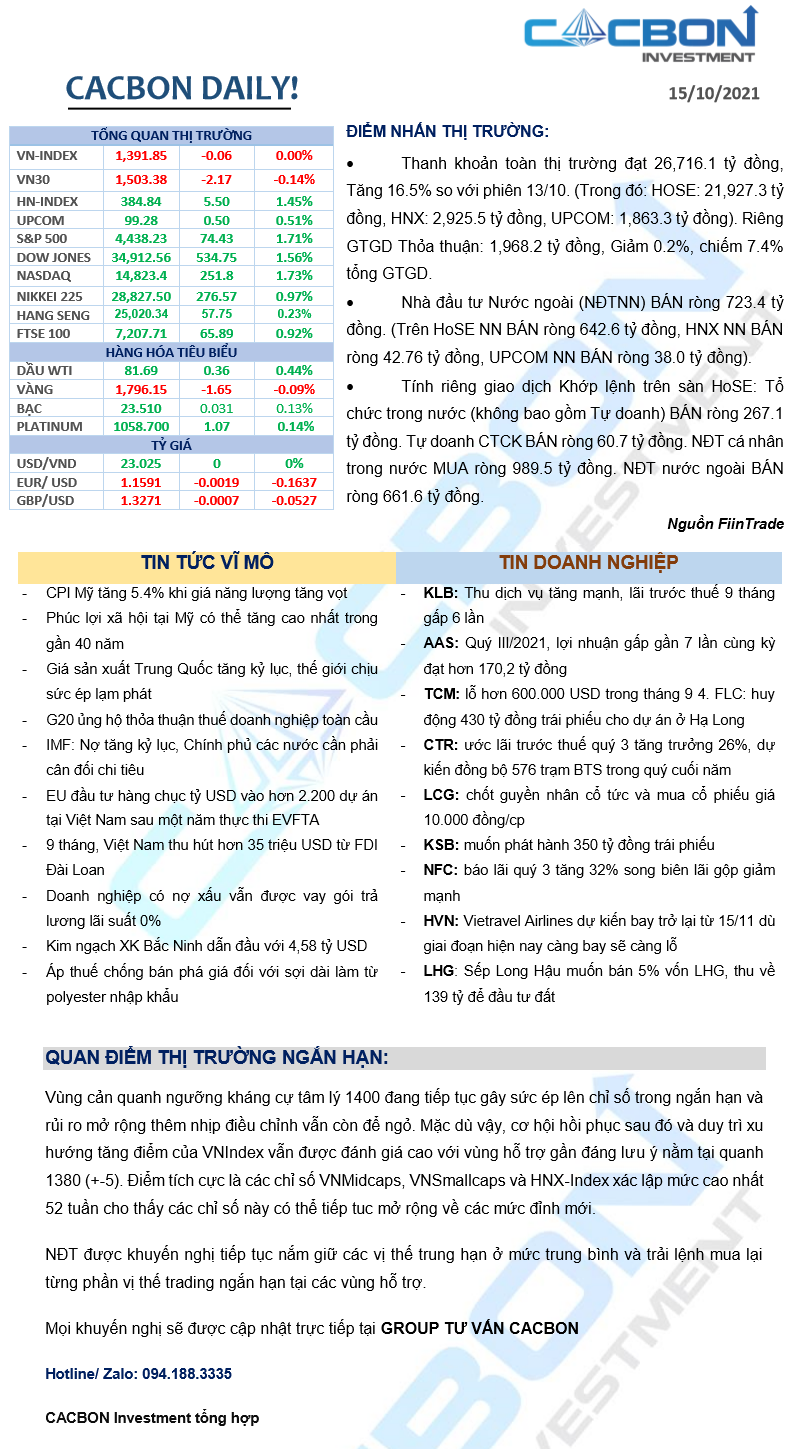 Nhật ký thị trường 15/10/2021 - Cổ phiếu Bất động sản diễn biến tích cực