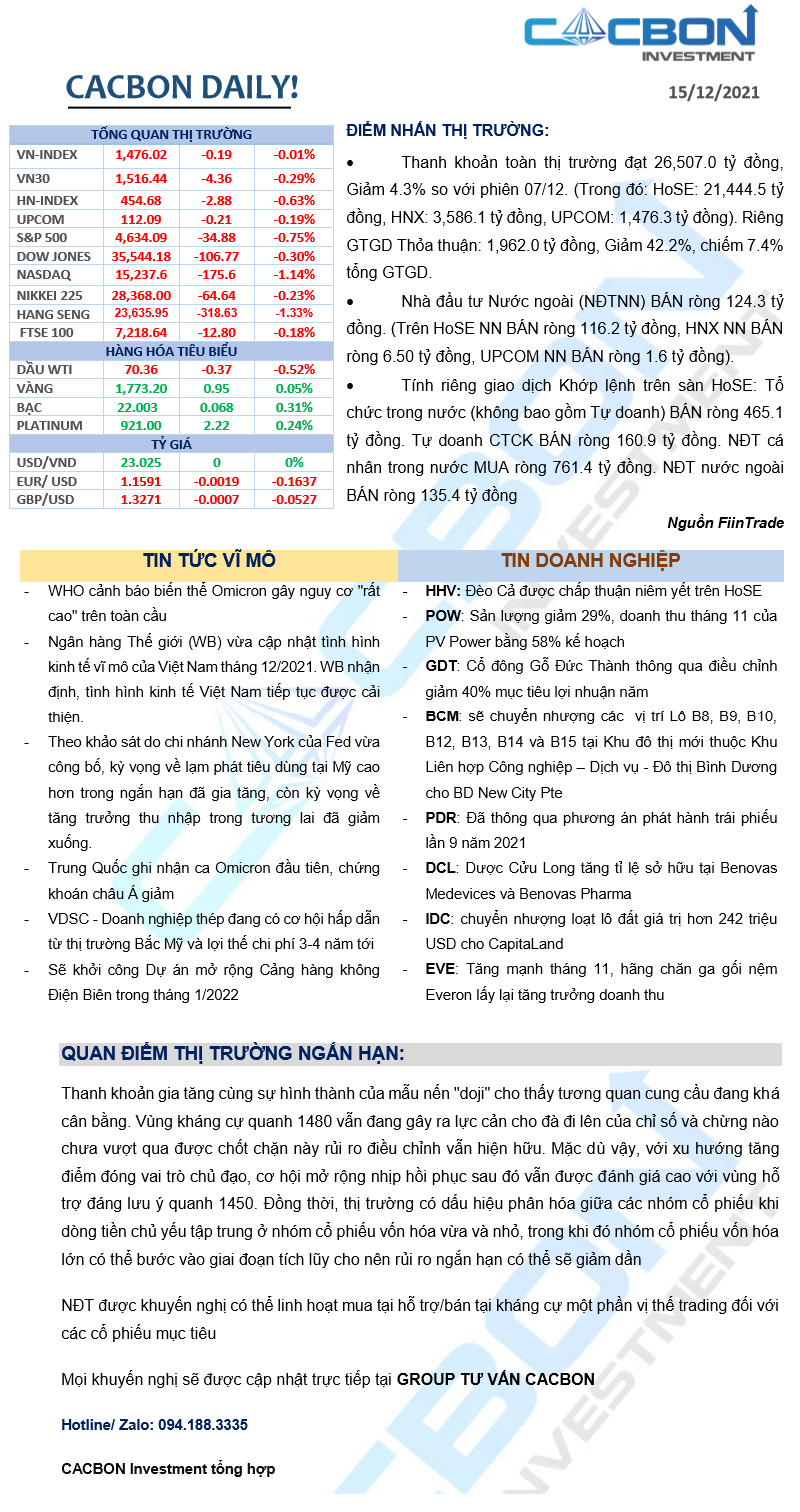 Nhật ký thị trường 15/12/2021 - Trên đà tích lũy