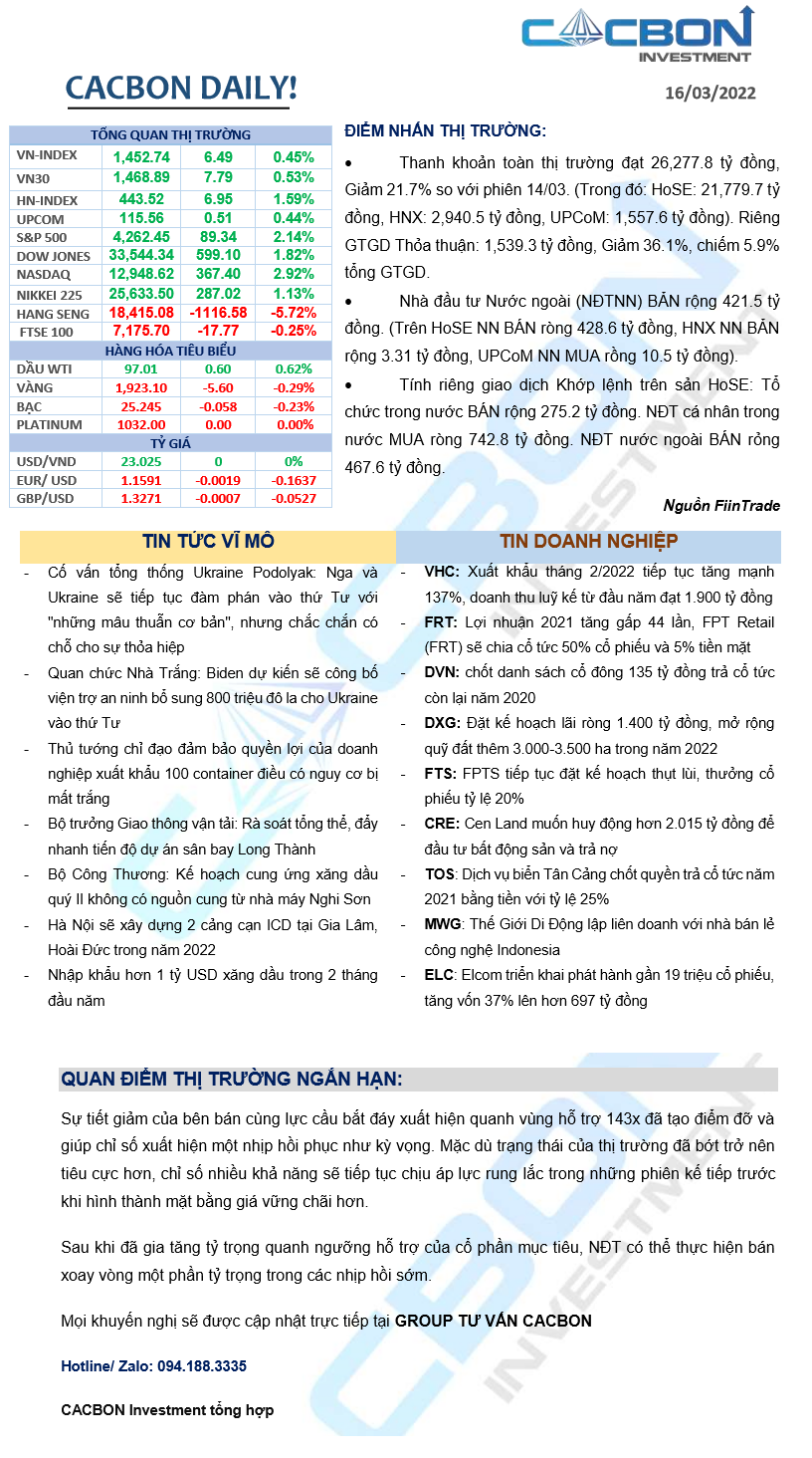Nhật ký thị trường 16/03/2022 - Chú ý vào xu hướng ở các cổ phiếu để tìm cơ hội