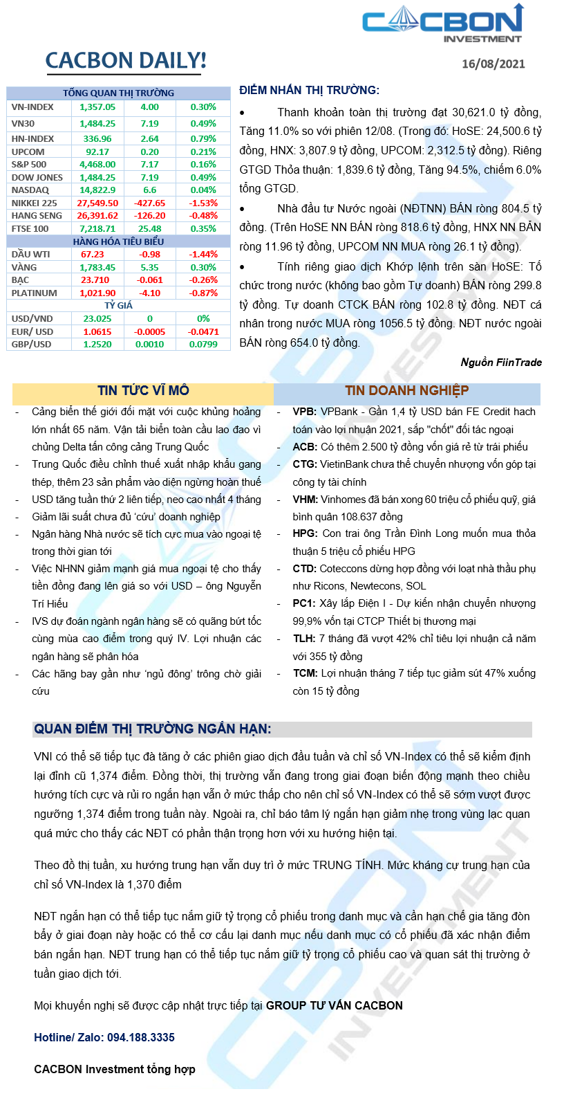 Nhật ký thị trường 16/08/2021 - Nhịp điều chỉnh đã kết thúc?