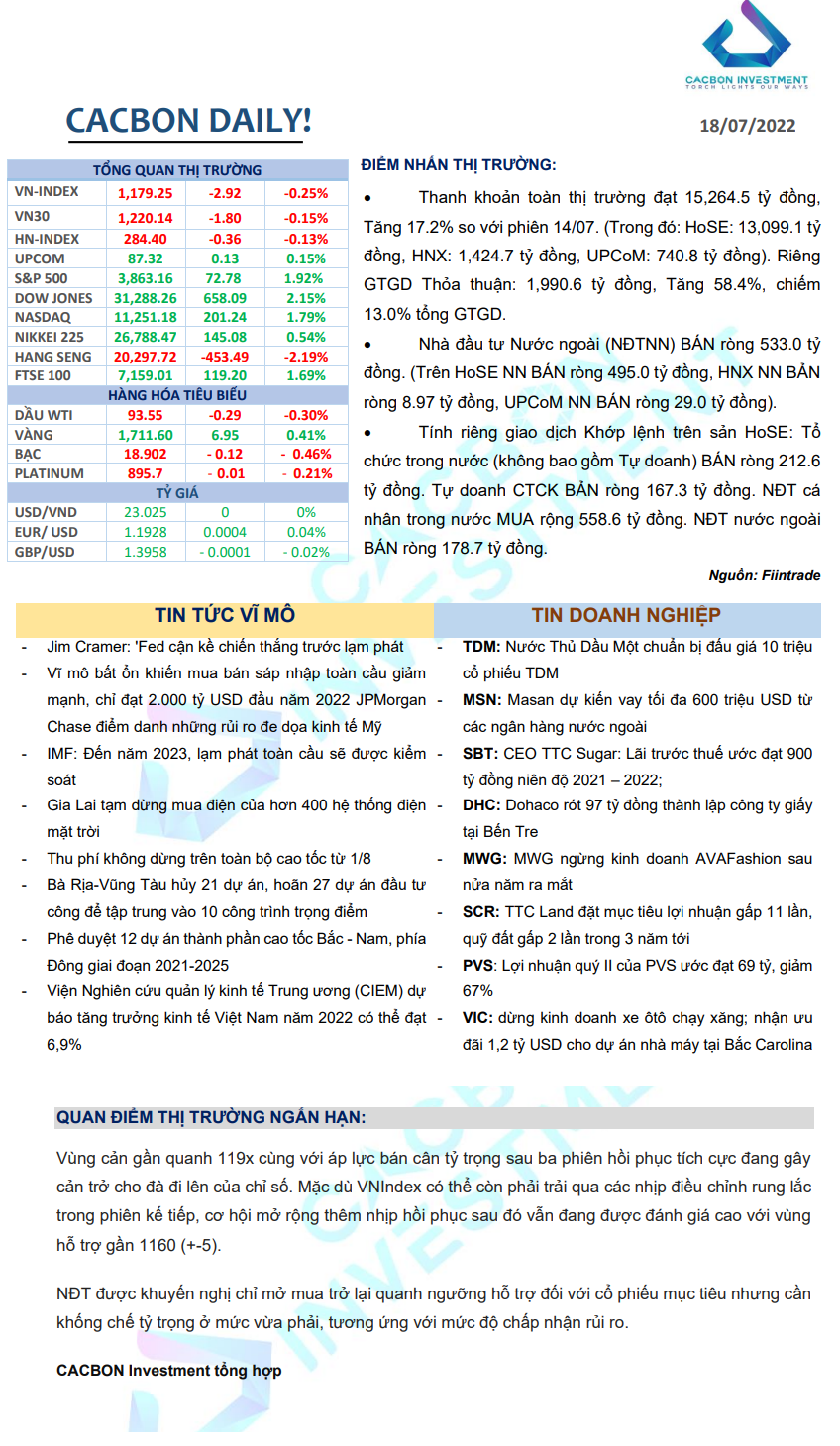 Nhật ký thị trường 18/07/2022 - Tâm lý giao dịch cẩn trọng