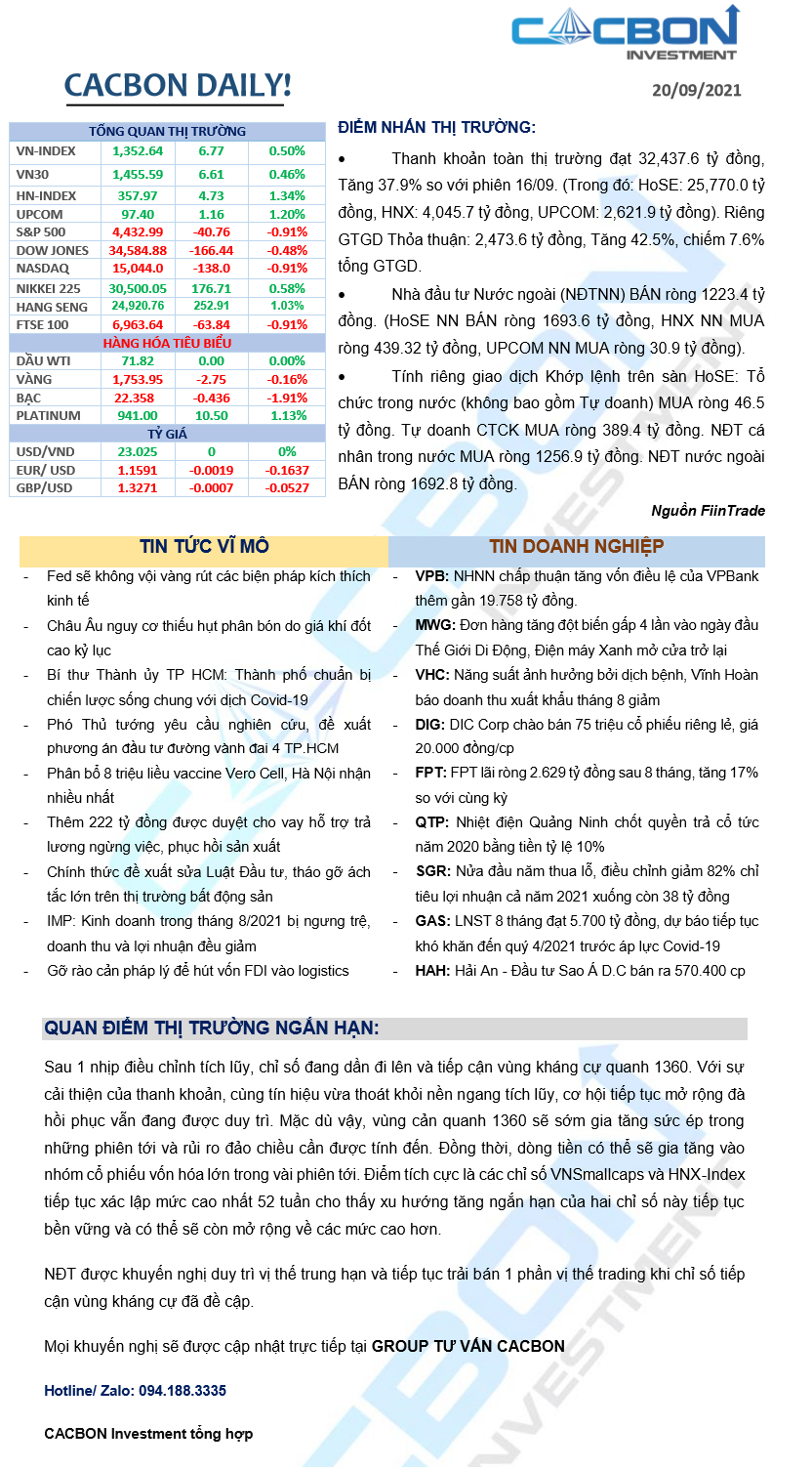 Nhật ký thị trường 19/09/2021 - Nhóm cổ phiếu Ngân hàng hồi phục trở lại