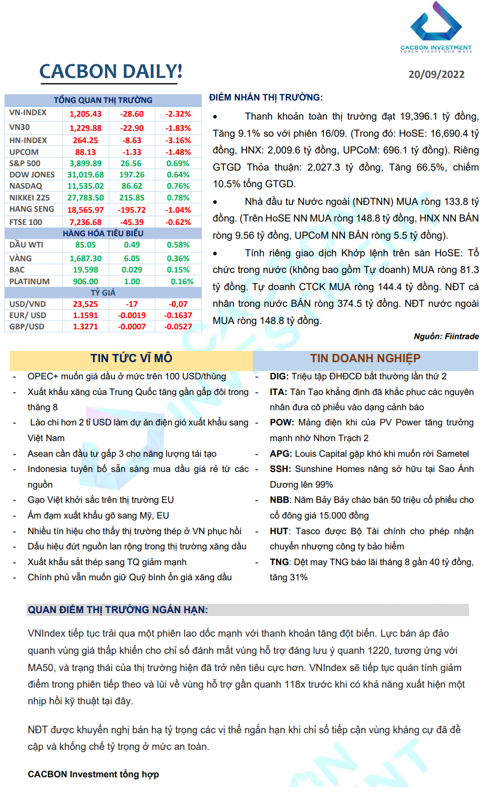 Nhật ký thị trường 20/09/2022 - VN-Index với sắc đỏ bao trùm