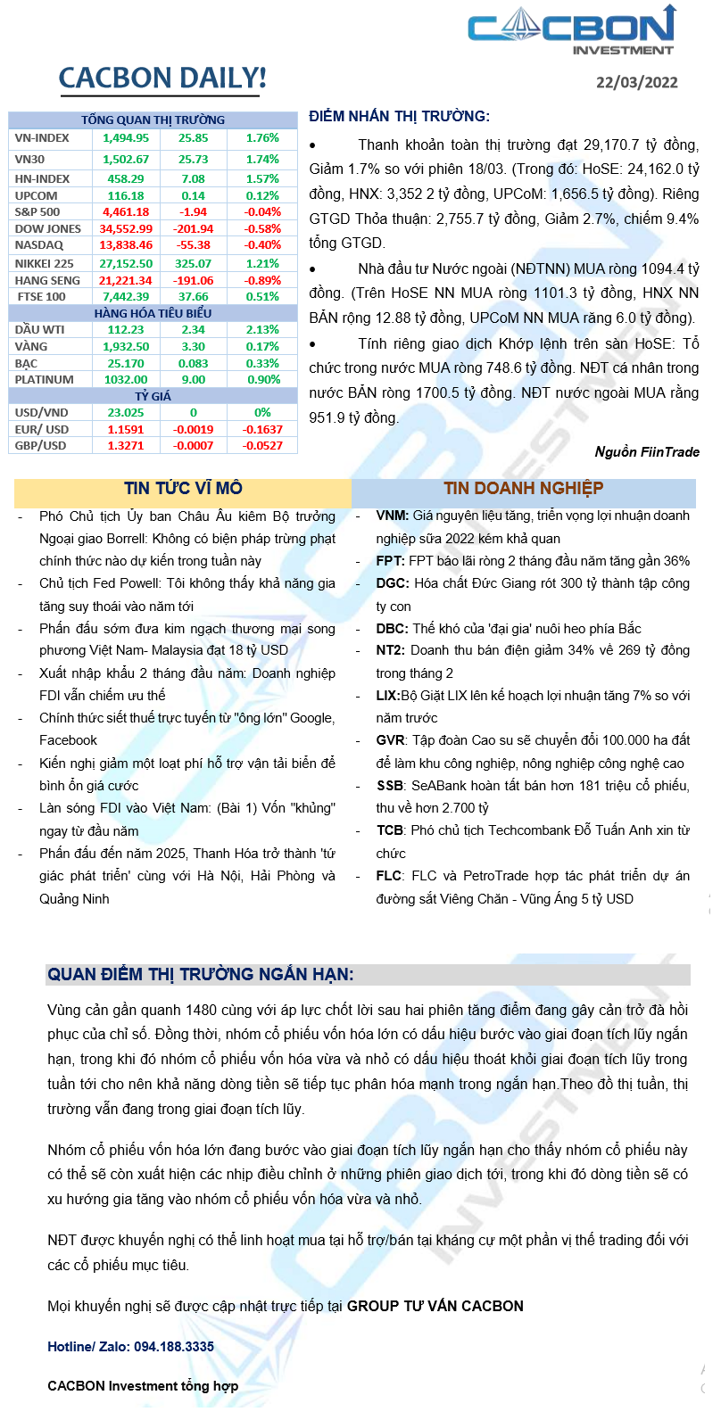 Nhật ký thị trường 22/03/2022 - Thị trường tiến tới vùng đỉnh cũ